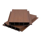 Служить гораздо дольше по сравнению с деревом, устойчив к перепадам температуры и погодных условия, имитирует внешней вид натурального дерева, не требует специальной обработки и покраски. Фассадные панели из ДПК на 30% больше удерживают тепло и на 50% больше увеличивают шумоизоляцию, по сравнению с обычным деревом.